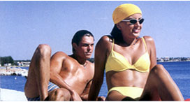 di mattina nell'ombra vicino al mare.